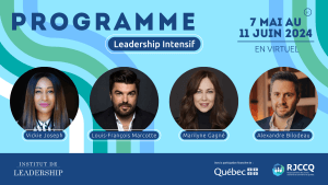 Intégrez la toute nouvelle cohorte en ligne du Programme Leadership Intensif de l’Institut de leadership, offerte par le Regroupement des jeunes chambres de commerce du Québec. Une opportunité unique se présente à vous, avec une réduction significative sur les frais d’inscription, grâce à la participation du gouvernement du Québec par l’entremise du ministère de l’Emploi et de la Solidarité sociale. Conçu pour les professionnels évoluant déjà dans des postes à responsabilités ou aspirant à y accéder, ce programme immersif va au-delà de la simple formation, offrant une plongée approfondie dans les rouages du leadership au cœur des enjeux du monde des affaires actuel.