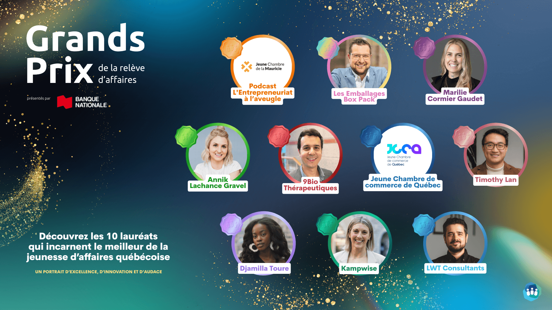 Montréal, le 19 septembre 2025 – Le Regroupement des jeunes chambres de commerce du Québec (RJCCQ) est fier de dévoiler les 10 lauréates et lauréats du concours Les Grands Prix de la relève d’affaires présentés par la Banque Nationale.
